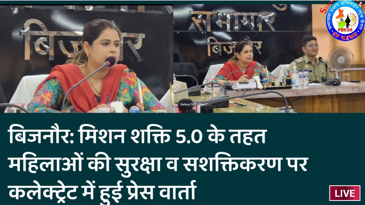 आज जनपद बिजनौर में जिलाधिकारी जसजीत कौर और पुलिस अधीक्षक अभिषेक झा ने शुक्रवार को कलेक्ट्रेट सभागार में मिशन शक्ति फेस 5.0 के विषय पर पत्रकारों के साथ विस्तृत वार्ता की। इस मौके पर अपर पुलिस अधीक्षक, सीओ सिटी संग्राम सिंह, महिला एवं बाल विकास विभाग, स्वास्थ्य विभाग, जनप्रतिनिधि और विभिन्न मीडिया संस्थानों के प्रतिनिधि मौजूद रहे बैठक में जिलाधिकारी ने कहा कि मिशन शक्ति 5.0 प्रदेश सरकार का ऐसा अभियान है, जो महिलाओं की सुरक्षा, आत्मनिर्भरता और सम्मान सुनिश्चित करने के उद्देश्य से विभिन्न विभागों के समन्वय से संचालित किया जा रहा है। उन्होंने बताया कि इस अभियान के जरिए सरकार की महिला-केंद्रित योजनाओं को ग्राम और शहर दोनों स्तरों तक पहुँचाने का प्रयास किया जा रहा है उन्होंने कहा कि उत्तर प्रदेश को वर्ष 2047 तक विकसित राज्य बनाने का लक्ष्य तभी संभव है जब राज्य की आधी आबादी यानी महिलाएं सुरक्षित, शिक्षित और स्वावलंबी हों। इसके लिए जिला प्रशासन लगातार प्रयासरत है डीएम कौर ने बताया कि पुलिस विभाग द्वारा महिला सुरक्षा के लिए कई कदम उठाए गए हैं, जिनमें सार्वजनिक स्थलों — स्कूल, कॉलेज, बाजार और परिवहन केंद्रों — पर एंटी रोमियो स्क्वाड की सक्रिय गश्त, महिलाओं को घरेलू हिंसा, दहेज निषेध, पोक्सो एक्ट जैसे कानूनों की जानकारी देना, और 1090, 112, 1076, 181, 1098, 1930 जैसे हेल्पलाइन नंबरों का प्रचार शामिल है।उन्होंने कहा कि महिलाओं को आत्मनिर्भर बनाने के लिए उन्हें मुख्यमंत्री कन्या सुमंगला योजना, निराश्रित महिला पेंशन, उज्जवला योजना, प्रधानमंत्री स्वनिधि योजना, मुख्यमंत्री सामूहिक विवाह योजना, अभ्युदय योजना जैसी योजनाओं का लाभ भी दिलाया जा रहा है एसपी अभिषेक झा ने बताया कि पुलिस विभाग मिशन शक्ति के तहत महिला सम्मान, सुरक्षा और आर्थिक सशक्तिकरण को लेकर लगातार जागरूकता अभियान चला रहा है। उन्होंने पत्रकारों से अपील की कि वे भी इस अभियान को समाज तक पहुँचाने में अपनी भूमिका निभाएं, ताकि अधिक से अधिक महिलाएं इन योजनाओं से जुड़ सकें।