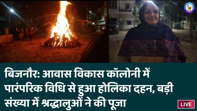 बिजनौर: आवास विकास कॉलोनी में पारंपरिक विधि से हुआ होलिका दहन, बड़ी संख्या में श्रद्धालुओं ने की पूजा