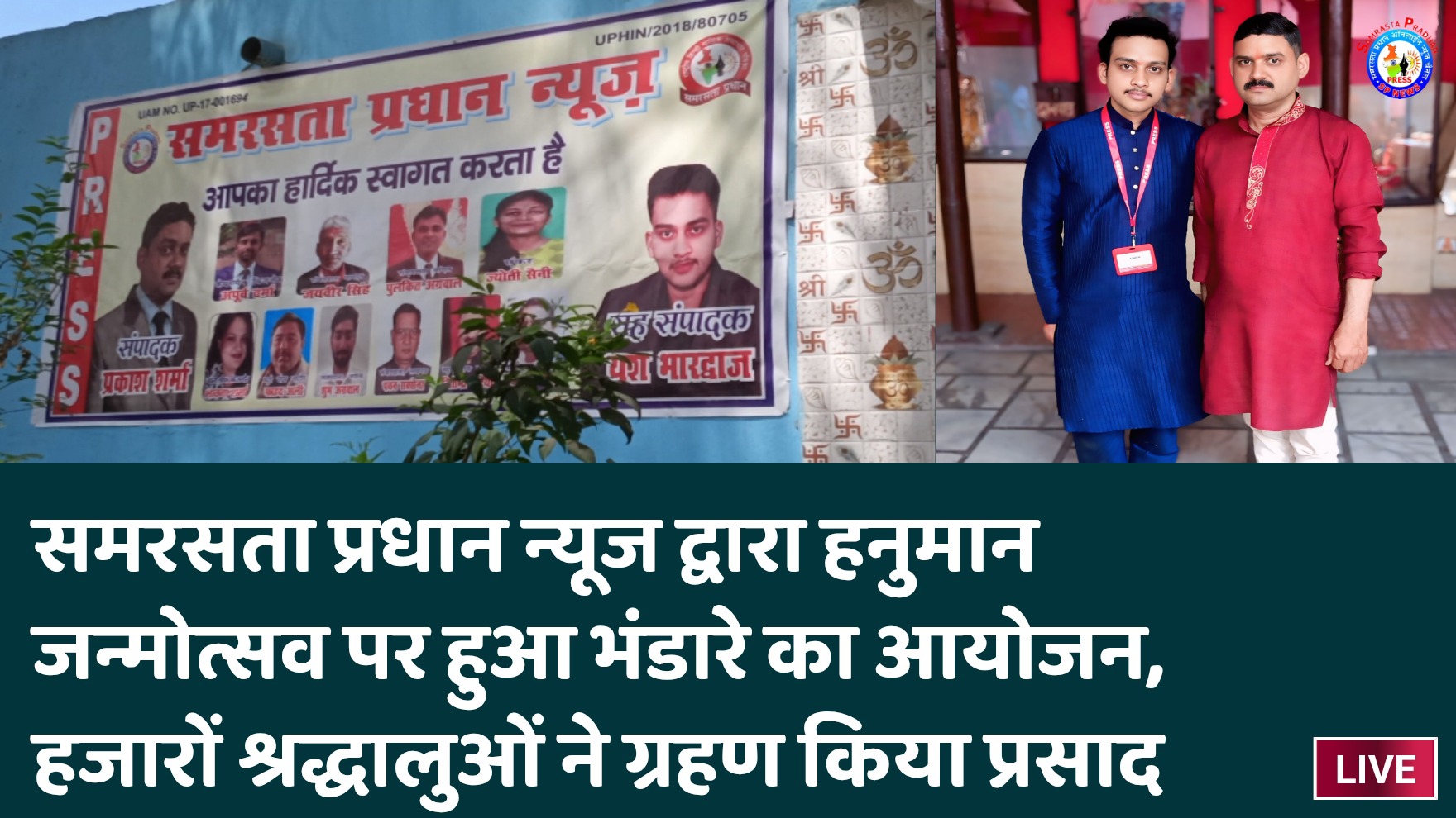 समरसता प्रधान न्यूज द्वारा हनुमान जन्मोत्सव पर हुआ भंडारे का आयोजन, हजारों श्रद्धालुओं ने ग्रहण किया प्रसाद